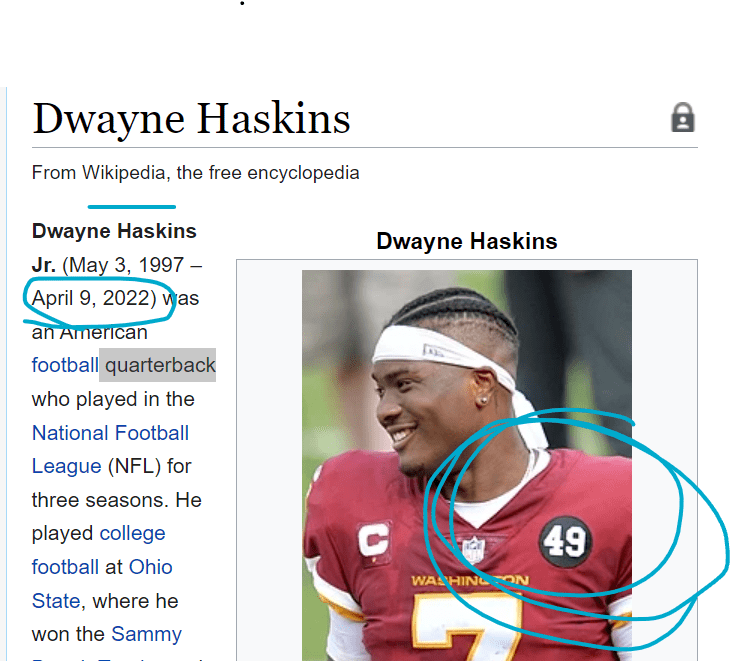HE SIGNED WITH REDSKINS AND DIED ON THE 99TH DAY OF THE YEAR