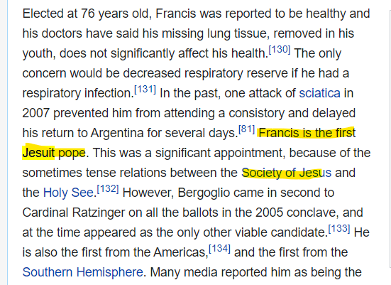 THE FIRST JESUIT POPE IS THE CURRENT POPE