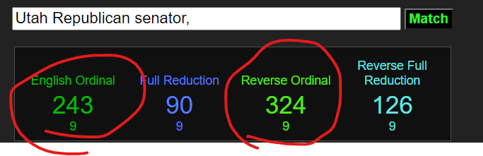 The Utah senator is dead on 4/23 the combo of the date 2,3,4 is in 2 cyphers