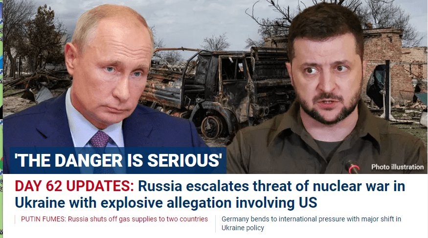 April 26, 2022 NUCLEAR WAR IN THE HEADLINES. PERFECTLY SCRIPTED FOR THE 116TH DAY OF THE YEAR. GIVE KNOWLEDGE AND SHARE THIS! Click to share on Facebook (Opens in new window) Facebook Click to share on Telegram (Opens in new window) Telegram Click to share on X (Opens in new window) X Like Loading... Related