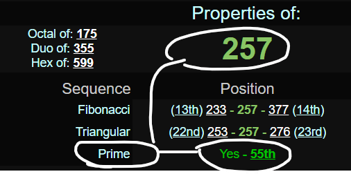 257 IS THE 55th PRIME NUMBER