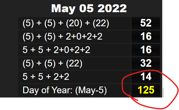 HE DIES ON THE 125TH DAY OF THE YEAR