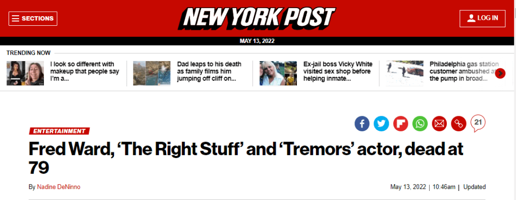 THE MAIN STREAM’S FOCUS IS ON HIS ROLE IN TREMORS, AND THE RIGHT STUFF.