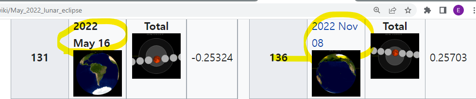 THERE WILL BE 2 LUNAR ELCIPSES IN 2022. 5/15 to 5/16 AND 11/8