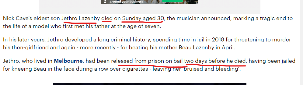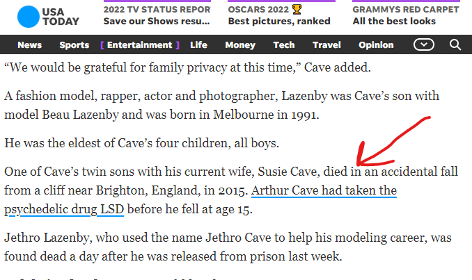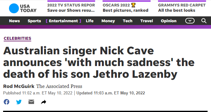 NICK CAVE ALSO HAD ANOTHER SON MYSTERIOULSY DIE