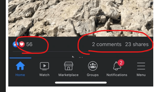 NOTICE THE PICTURE HAS 56 LIKES AND 2/23 COMMENTS/SHARES