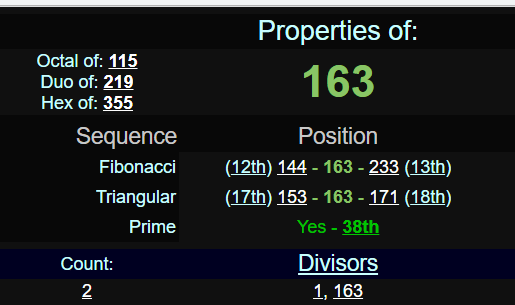 163 IS THE 38 PRIME NUMBER AND 38 IS A COMMON MURDER NUMBER WE SEE.