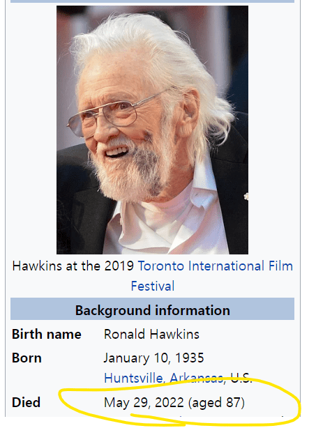 RONNIE HAWKINS IS DEAD 32 WEEKS AND 2 DAYS BEFORE HIS NEXT BIRTHDAY