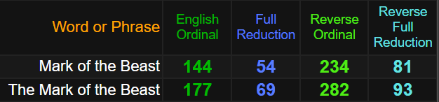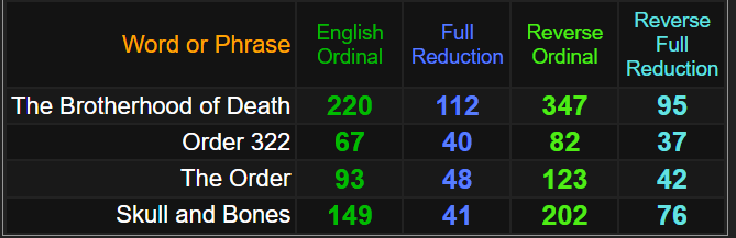 They leave a numeric stamp on every RITUAL the do. Murders in the headlines, laws being passed, the sports games to occupy your minds, all these events are coded and used for mind control.