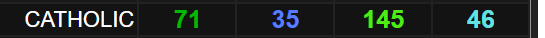 notice Catholic is 71 and 35, 145, 46 The only 2 Catholic Presidents we have had was Kennedy who was 35th president and Killed at age 71 and now we have President Biden, also catholic, and the 46th President.