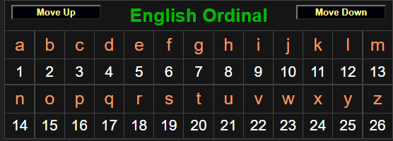the 4 cyphers you see in the charts are simply adding up the numbers that correspond to the letter and its place in the alphabet