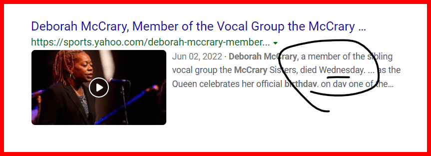 DEBORAH IS DEAD 79 MONTHS LATER