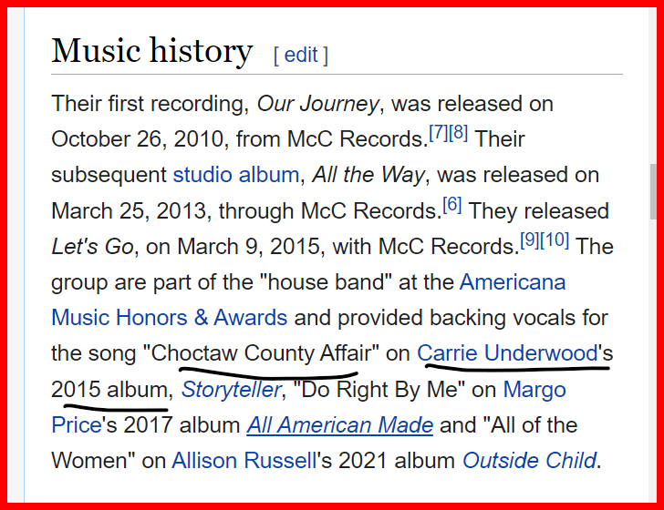THEY WERE BACKUP VOCALS ON CARRIE’S ALBULM THAT RELEASED 10/26/2015, STORYTELLER.