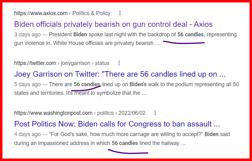 June 5, 2022June 6, 2022 56 Candles in A Satanic Ritual for Gun Control. Why 56? Every headline in every news channel says the same thing. Is there no independent thought anymore? GIVE KNOWLEDGE AND SHARE THIS! Click to share on Facebook (Opens in new window) Facebook Click to share on Telegram (Opens in new window) Telegram Click to share on X (Opens in new window) X Like Loading... Related