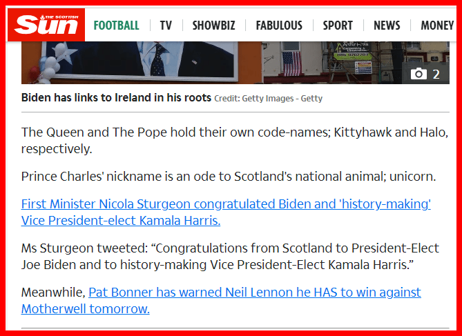 President Biden’s secret service name is Celtic