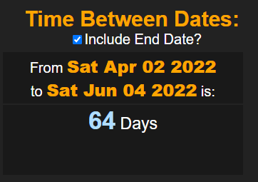 Wikipedia has 2 birthdays 4/2 which is 64 days before his death and 4/12, 44 weeks before his next birthday