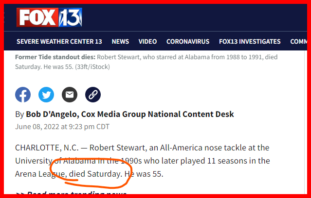 HIS DEATH DOES NOT MAKE HEADLINES UNTIL JUNE 8th, WRITTEN 6/8 OR 8/6