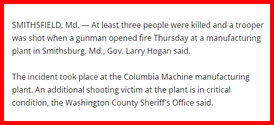 This shooting occurs in Smithsburg, Maryland, from the 62nd governor, for his satanic ritual.