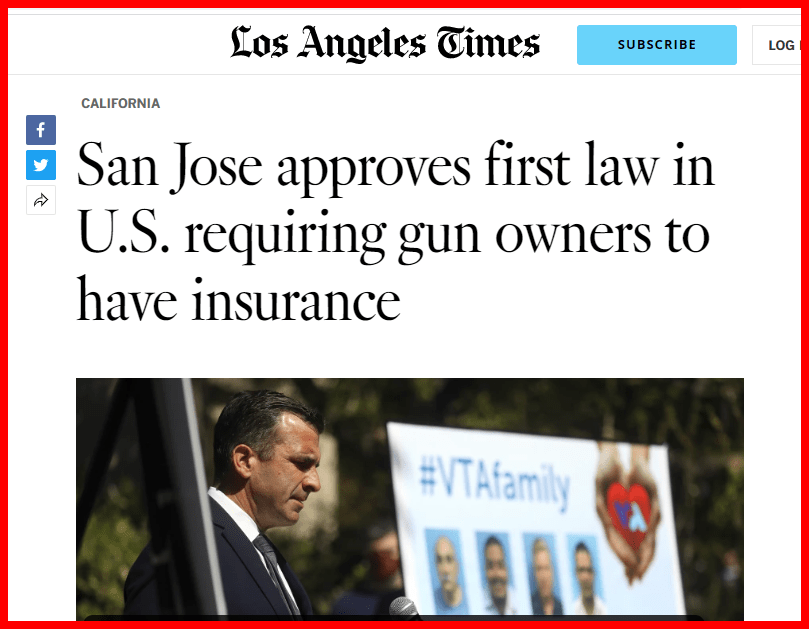 Jan 25th San Jose was first to approve law requiring gun owners to have insurance.