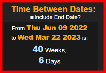 40 WEEKS AND 6 DAYS BEFORE HIS NEXT BIRTHDAY, LIKE 46