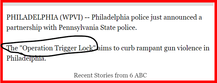 PHILLY ALSO WAS IN THE HEADLINES ON THIS SAME DAY FOR OPERATION TRIGGER LOCK