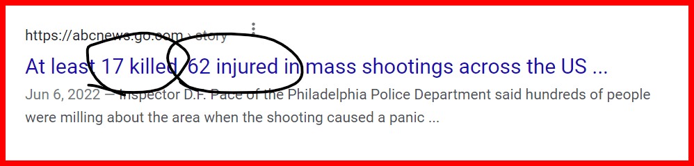 June 17, 2022 JUNE 6TH HEADLINE EXPLAINED WITH GEMATRIA. THE SHOOTING HEADLINE BULLSHIT IS ALL SCRIPTED TOWARD AN AGENDA. HEADLINES ARE FROM 6/6 17 KILLED AT LEAST HUH 62 INJURED GIVE KNOWLEDGE AND SHARE THIS! Click to share on Facebook (Opens in new window) Facebook Click to share on Telegram (Opens in new window) Telegram Click to share on X (Opens in new window) X Like Loading... Related