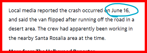 CRASH OCCURED ON JUNE 16TH, THE MONTHLY KILL DATE