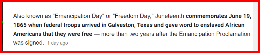 THE REASON FOR THE HOLIDAY IS THE EMANCIPATION OF BLACK SLAVES IN TEXAS.