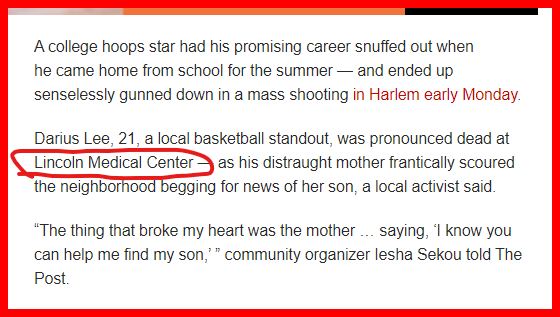 LINCOLN MEDICAL CENTER, THE MAN SHOT AND KILLED FOR THE FREEDOM OF SLAVES.