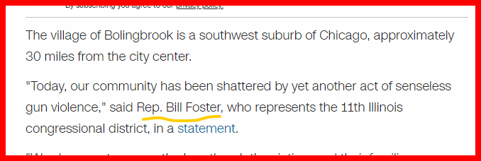 OUR SATURDAY SHOOTING BY BILL FOSTER REP IL. IS THE SPOKESMAN FOR THIS GUN AGENDA.