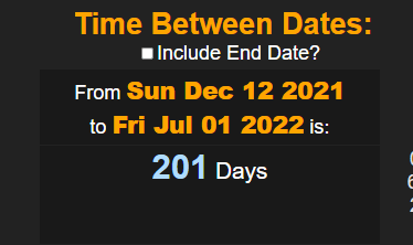 if you count the span its 202 days
