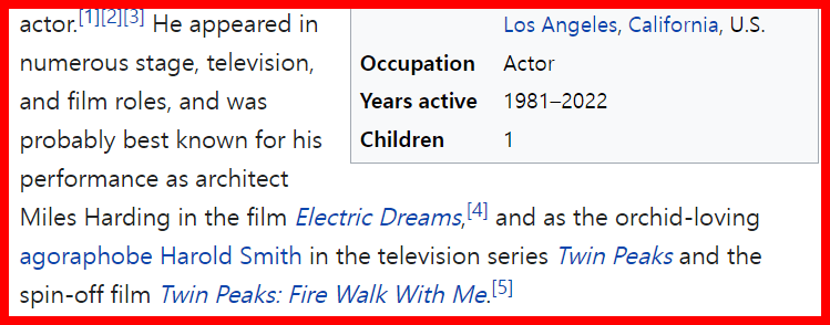 he played HAROLD SMITH on TWIN PEAKS.