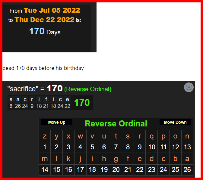 dead 170 days before his birthday