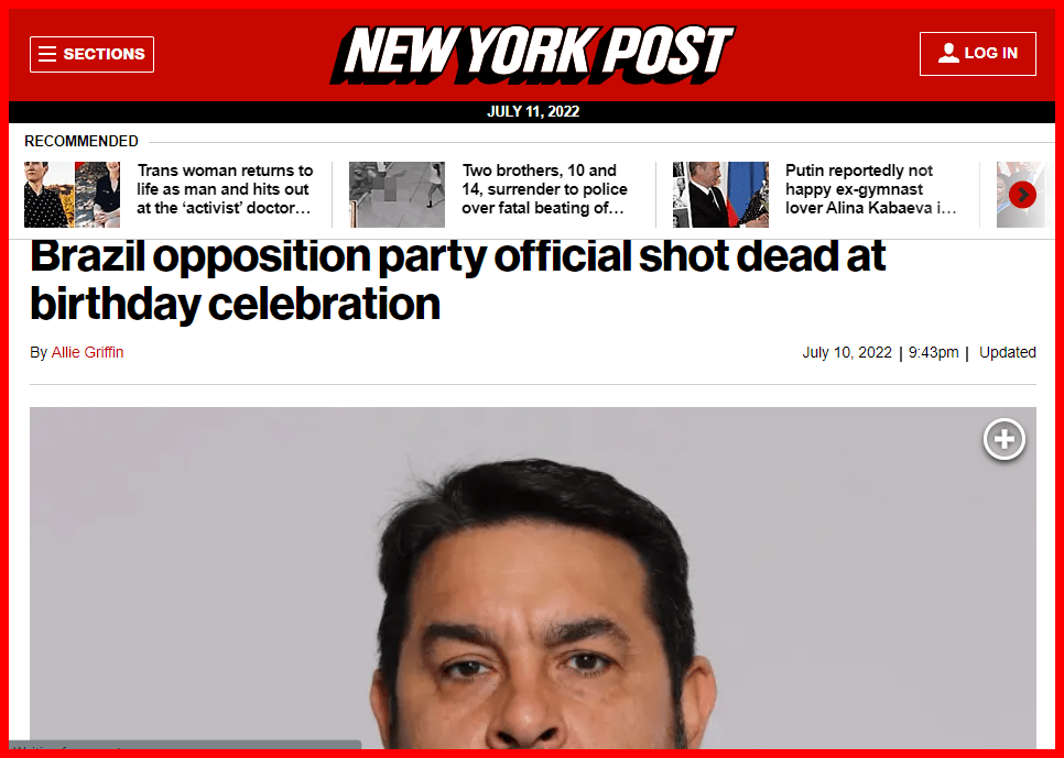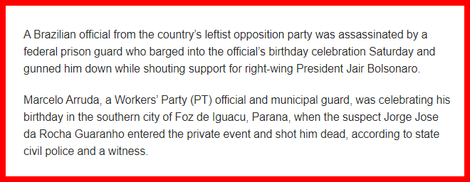 July 11, 2022 BRAZIL ASSASSINATION OF MARCELO ARRUDA, SHOT DEAD AT HIS BIRTHDAY PARTY. GIVE KNOWLEDGE AND SHARE THIS! Click to share on Facebook (Opens in new window) Facebook Click to share on Telegram (Opens in new window) Telegram Click to share on X (Opens in new window) X Like Loading... Related