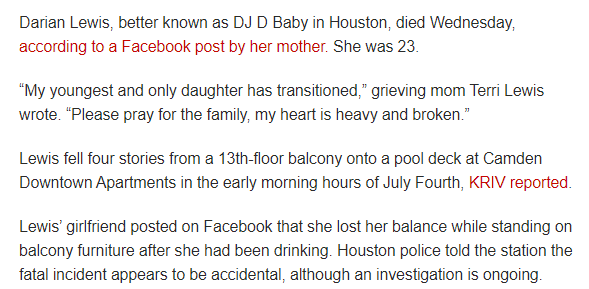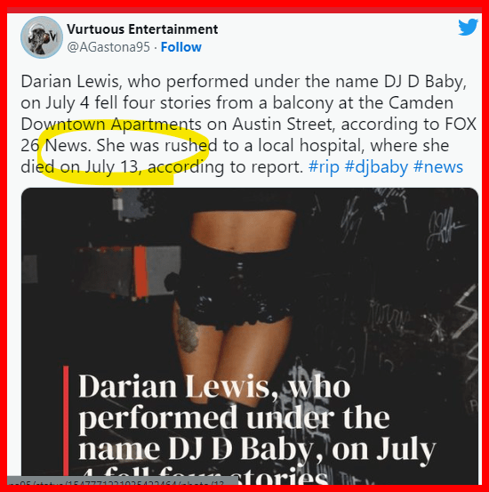 THEY ARE REPORTING SHE DIED ON JULY 13TH AFTER THE FALL