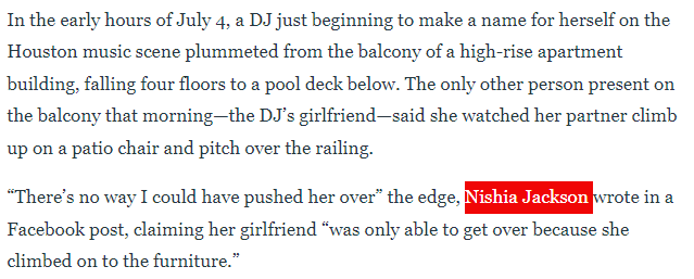 NISHIA JACKSON WAS PRESENT AND SAID SHE DIDNT PUSH HER OVER