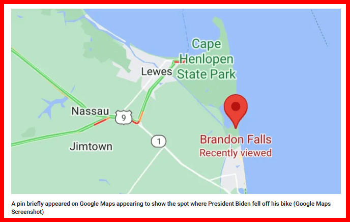 July 21, 2022July 21, 2022 GOOGLE MAPS MARKS SPOT WHERE JOE BIDEN WRECKED HIS BIKE. 322 AND SKULL AND BONES. GIVE KNOWLEDGE AND SHARE THIS! Click to share on Facebook (Opens in new window) Facebook Click to share on Telegram (Opens in new window) Telegram Click to share on X (Opens in new window) X Like Loading... Related