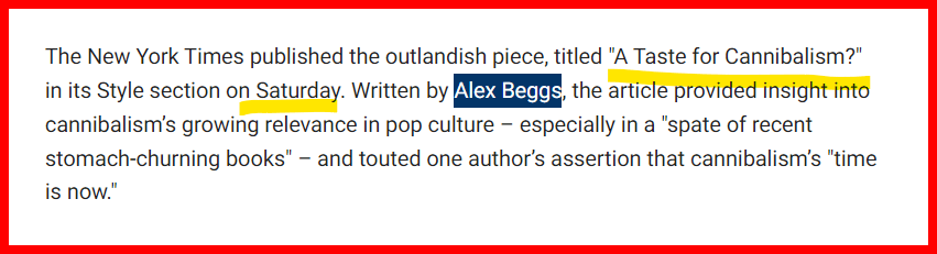 The New York Times turned heads on Saturday with this article about cannibalism.