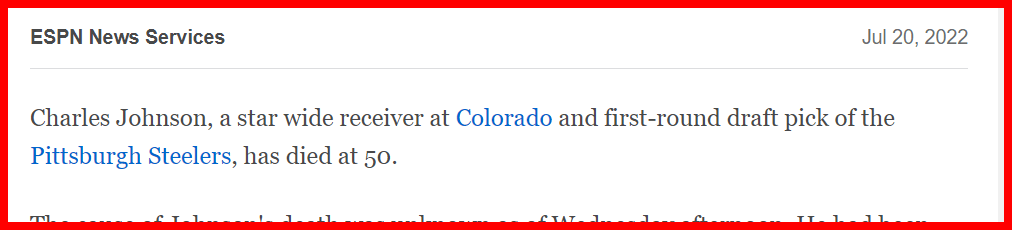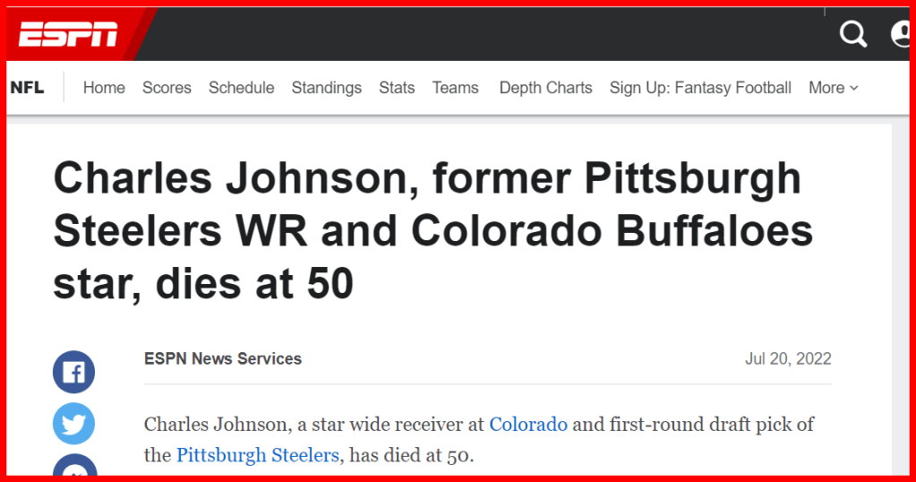 He is dead 50 days before the anniversary of his debut with the STEELERS on Sept. 4, and he is sacrificed at age 50.