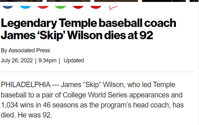 July 30, 2022July 30, 2022 JAMES E. WILSON COACHED FOR 46 SEASONS AT TEMPLE AND IS NOW DEAD IN A MODERN-DAY SACRIFICE. 46 SEASONS JAMES WILSON IS DEAD 41 WEEKS AFTER HIS BIRTHDAY GIVE KNOWLEDGE AND SHARE THIS! Click to share on Facebook (Opens in new window) Facebook Click to share on Telegram (Opens in new window) Telegram Click to share on X (Opens in new window) X Like Loading... Related