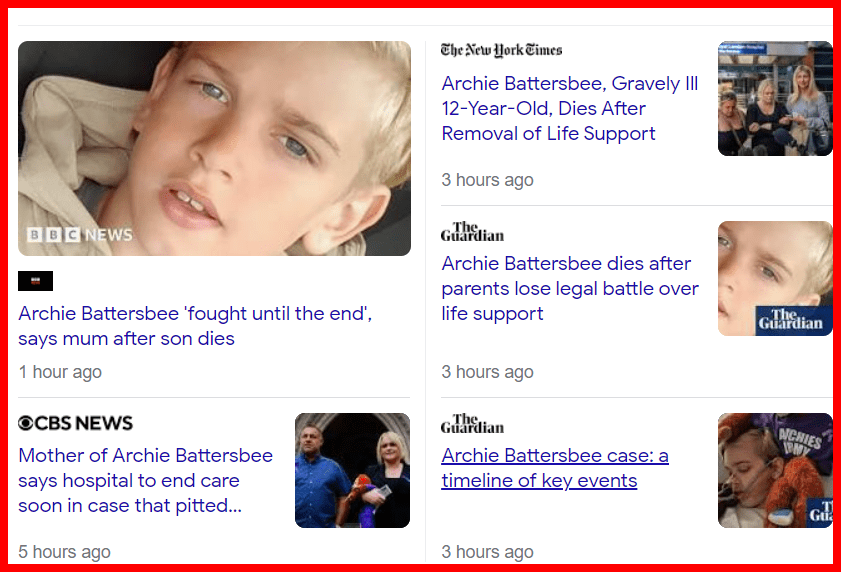 August 6, 2022August 6, 2022 Archie Battersbee, Victim 1 of the 8/6 kill date. dead 121 days after the accident GIVE KNOWLEDGE AND SHARE THIS! Click to share on Facebook (Opens in new window) Facebook Click to share on Telegram (Opens in new window) Telegram Click to share on X (Opens in new window) X Like Loading... Related
