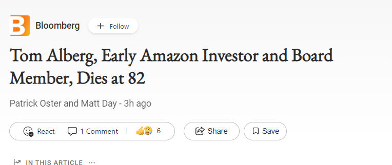 August 7, 2022 8/5 sacrifice of Amazon Investor dead age 82. Headline News on 8/6. dead 174 days after his birthday and 191 days before his next one GIVE KNOWLEDGE AND SHARE THIS! Click to share on Facebook (Opens in new window) Facebook Click to share on Telegram (Opens in new window) Telegram Click to share on X (Opens in new window) X Like Loading... Related