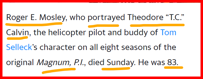 he is dead a span of 127 days before the anniversary of the release of Magnum P.I.