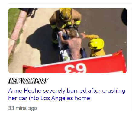 “Crashes car into a home igniting fire, taken away in ambulance with severe burns”.