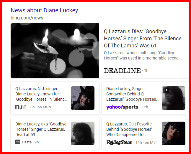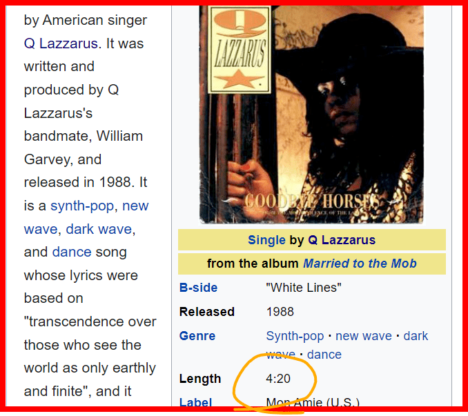 GOODBYE HORSES WAS THE HIT SONG ON THE ALBULM MARRIED TO THE MOB
