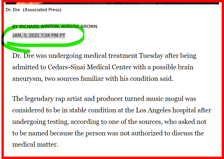 322 days after his birthday, Dr Dre has a Brain Aneurysm in 2021.