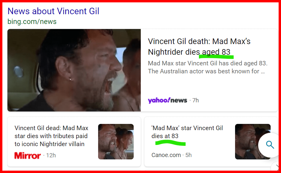 Mad Max’ star Vincent Gil has died aged 83, according to the headlines