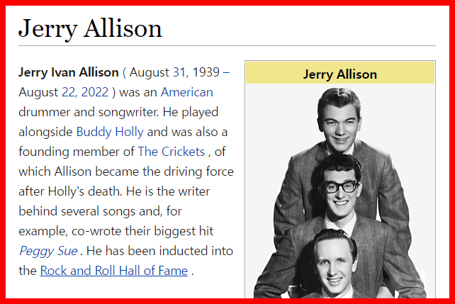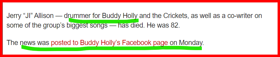 HE IS DEAD 17 DAYS BEFORE BUDDY HOLLY’S BIRTHDAY