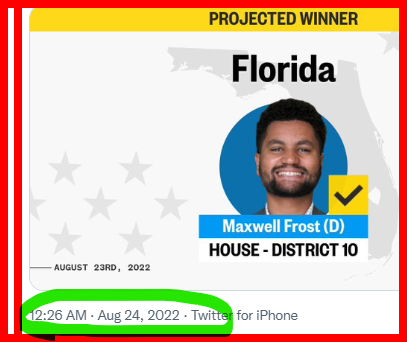 Headline news on the 24th of Aug, the first of Gen Z that might make congress. He announced he won right after midnight on 8/24 Maxwell Alejandro Frost, on track and chosen by the numbers. 220 days after his birthday, He is headline news and on his way. more gun laws THE NEXT ELECTION IS ON NOV … Continue reading MAXWELL FROST BECOMES THE NEXT FUTURE RITUAL ON 24/8. Gematria proves he is part of Skull and Bones.