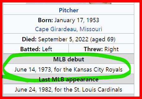 September 7, 2022 Former Royals pitcher Mark Littell dies at the age of 69 debuted in 73 and dead 83 days after his debut anniversary 33 weeks exactly after his birthday GIVE KNOWLEDGE AND SHARE THIS! Click to share on Facebook (Opens in new window) Facebook Click to share on Telegram (Opens in new window) Telegram Click to share on X (Opens in new window) X Like Loading... Related